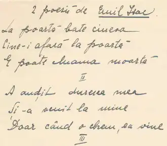 Fragment from Isac's poem Cântec ("Song")