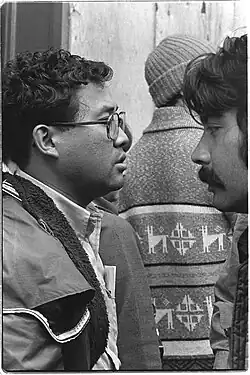 In the mid-1970s, de Guzman served as vice president of the International Hotel Tenants Association (IHTA) during the critical years leading up to the hotel's eviction in 1977.[9] His rise to leadership was largely a result of his volunteer efforts after a hotel fire in 1969, where an arson resulted in the death of 3 tenants.[10] He had additionally resided in the hotel as an on and off resident for over five years.[11] In 1975, he was the first to alert the KDP regional leadership that the hotel was in the process of being sold to the Thailand-based firm Four Seas Corporation.[6] Along with other KDP members and activists, de Guzman responded to the crisis by working with the Tenants Association.[6] Everyday a small number of tenants led by the president of the Tenants Association, Wahat Tampao, and de Guzman protested at City Hall by blocking the corridors and demanding an audience with the mayor or members of the Board of Supervisors.[6] Afterwards, they would go across the street and demand a meeting with the executive director of the Redevelopment Agency or the Housing Authority.[6]