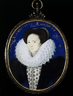 Playwrights, musicians and poets have also expressed views. The theatre historian and playwright Andrew B. Harris wrote a play, The Lady Revealed, which chronicles Rowse's identification of Lanier as the "Dark Lady". After readings in London and at the Players' Club, it received a staged reading at New Dramatists in New York City on 16 March 2015.[30] In 2005,[31] the English conductor Peter Bassano, a descendant of Lanier's brother, suggested she provided some of the texts for William Byrd's 1589 Songs of Sundrie Natures, dedicated to Lord Hunsdon, and that one of the songs, a setting of the translation of an Italian sonnet "Of Gold all Burnisht", may have been used by Shakespeare as the model for his parodic Sonnet 130: My mistress' eyes are nothing like the sun. The Irish poet Niall McDevitt also believes Lanier was the Dark Lady: "She spurned his advances somewhere along the line and he never won her back.... It's a genuine story of unrequited love."[32] Tony Haygarth has argued that a certain 1593 miniature portrait by Nicholas Hilliard depicts Lanier.[33]