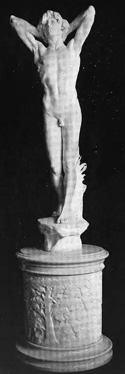 - Free, 1876, bronze statuette,[9] exhibited at the Glaspalast in 1883,[29] the Royal Academy in 1885,[16] and the Paris Salon in 1894;[24] location currently unknown. A copy in basswood by German artist Otto Braun is currently at the Crystal Bridges Museum of American Art[11]