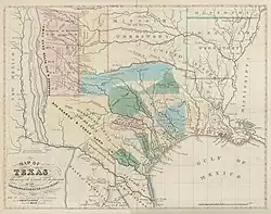 Mexico approved immigration on a wider basis in 1824 with enactment of the General Colonization Law. This law authorized all heads of household who were citizens of or immigrants to Mexico as eligible to claim land.[4] After the law was enacted, the state government of Coahuila y Tejas was inundated with requests by foreign speculators to establish colonies within the state.[7] There was no shortage of people willing to come to Texas. The United States was still struggling with the aftermath of the Panic of 1819, and soaring land prices within the United States made the Mexican land policy seem very generous.[7]