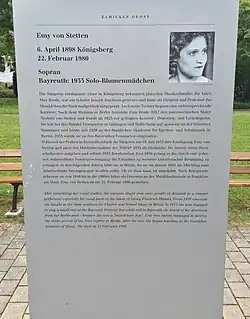 Emy Freifrau von Stetten (6 April 1898 – 22 February 1980) was a German oratorio, opera and Lied soprano and music teacher at the Frankfurt University of Music and Performing Arts.