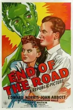 End of the Road is a 1944 American crime film directed by George Blair and written by Denison Clift, Gertrude Walker and Albert Beich. The film stars Edward Norris, John Abbott, June Storey, Jonathan Hale, Pierre Watkin and Ted Hecht. The film was released on November 10, 1944, by Republic Pictures.[1][2][3]