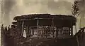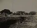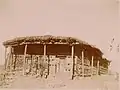 In his account of the visit to Eritrea in 1891 by a Royal Commission sent by the Italian government, Ferdinando Martini, in line with his derogatory attitude towards all matters concerning the native "Abyssinians", described the then church at Asmara as less decent than the huts for hay in Italian farmyards.[10] The illustrated fourth (1896) edition of his book includes a photograph of the church,[11] some seven metres long, with traditional "monkey head" walls and a thatched roof whose projection beyond the walls was supported by rough poles.