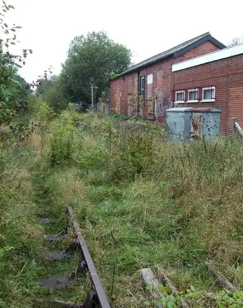 Passenger services over the line were withdrawn in 1956 and the station closed to passenger traffic although it continued to be used for excursion trains until 1963.[1] Goods traffic continued until a later date, traffic to Harrison and Son Ltd lasting until 1961.[4] The line through the closed station was singled in 1971 but the platform and some of the station buildings remain in existence. The line through the station continued in use until 1988 for freight services and since 1988 the line has officially been out of use but not closed.