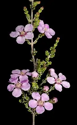 The bushy shrub typically grows to a height of 0.3 to 0.7 metres (1 to 2 ft). It blooms between August and September producing white-pink-purple flowers.