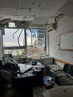 On 4 March 2022, the Zaporizhzhia NPP came under temporary occupation.[15] The armed seizure of the plant by the Russian military[16] resulted in shelling that damaged one of the ZNNP Training Center buildings, the reactor building, the block transformer, as well as household premises, some buildings, structures and equipment. An immediate threat occurred to the lives of plant personnel, along with a threat of nuclear and radiation hazards and an accident.[17] The "Zaporizhska" overhead line and the "Southern Donbaska" overhead line bore damage as well.