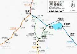 Locationbetween Okaya Station, Okaya, Nagano and Midoriko Station, Shiojiri, Nagano