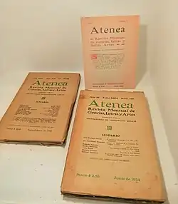First editions (1924), 108 (1934) and 295–296 (1950) of the Journal, Atenea, founded by Enrique Molina, exhibited at the Gallery of History at Conceptión.1913 – American Philosophy (Collection of Essays)