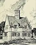 One hundred architects and urban planners took part in the Romford development,[1] including William Curtis Green, Philip Tilden, Raymond Unwin, Richard Barry Parker, and Baillie Scott.[2] The exhibition opened in the Spring of 1911, and with it came the establishment of several roads, including Balgores Lane, Crossways, Heath Drive, Heaton Grange Road, Meadway, Parkway, Reed Pond Walk, Risebridge Road, and Squirrels Heath Avenue. Of the 140 houses built in 1911, six were designated as Grade II listed buildings by Historic England.