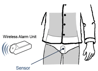 • Enuresis alarm – includes sleeping mats with electrical circuits; alarms with sensors placed in child's underwear; alarms that are wired or wireless and produce noise, vibration, or light; and alarm clocks or mobile phones for older individuals