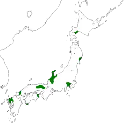This species of dragonfly is native to Japan, distributing widely around the forested headwaters of rivers in its four main islands,[2] serving as a freshwater indicator of ecosystem health.[3] With the adults being adapted for flight in these cool habitats, and the larvae to exploit the stable environment and detritus based ecosystems of high elevation spring-fed seeps and streams.[4]