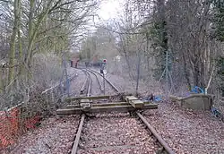 Railway track of the Epping Ongar Railway close to Epping tube station (Epping Forest Halt). Passengers cannot alight here due to the absence of a platform.
