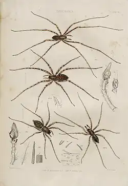 - ^ Bolzern, Angelo; Burckhardt, Daniel; Hänggi, Ambros (2013). "Phylogeny and taxonomy of European funnel-web spiders of the Tegenaria−Malthonica complex (Araneae: Agelenidae) based upon morphological and molecular data". Zoological Journal of the Linnean Society. 168 (4): 723–848. doi:10.1111/zoj.12040.
