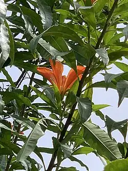 Flowers are orange, solitary and range from 6 - 11.5 cm long.[3] Unlike other genera of Turneroideae which exhibit distyly, E. odorata does not.[4]