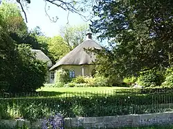 The current form of the village is largely due to Joshua Smith, who between the 1780s and the 1810s was responsible for replacing the Elizabethan manor house with one higher up the hill east of the village, designed by George Steuart.[4] The new house was at first called Stoke Park, and later Erlestoke Park and Erlestoke House.[4] Smith landscaped the park which surrounds the village on three sides, adding a lake, and moving the houses of the village to the current High Street. Newly built estate cottages incorporated pieces of sculpture and architectural fragments from the earlier manor house; an example is Tilted Lodge, c. 1800.[3][5]