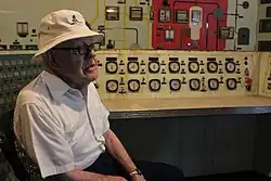 Graves sits at the control panel of the deactivated SM-1 nuclear reactor in 2017