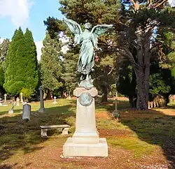 Ernest William Moir died in 1933 aged 71 and is buried in the family plot at Brookwood Cemetery under a monument which is Grade II listed. This features a bronze profile portrait of Moir's son 2nd Lieutenant Reginald 'Rex' Moir (1893–1915) of the Royal Engineers, who died of meningitis in the Officers' Hospital in London. The angel sculpture surmounting the pedestal is by Lillian Wade.[6] He was succeeded to the title by his second son, Sir Arrol Moir (1894–1957), named after William Arrol, his first benefactor.