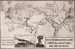 Burzagli was given command of the cruiser RN Libia from February 1921 to February 1923, and during this period, the ship circumnavigated the globe.[4] On his return, Burzagli was promoted to the rank of rear admiral; and he and assigned to head the Accademia Navale and the Italian Institute of Marine War.