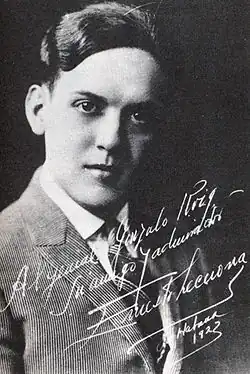 Lecuona was born in Guanabacoa, Havana, Cuba, Kingdom of Spain,[5] to a Cuban mother and a Canarian father. There are inconsistencies surrounding his birthdate, with some sources indicating the year 1895, and others still giving the day as August 6. He started studying piano at the age of five,[1] taught by his sister Ernestina Lecuona, a famed composer in her own right. As a child prodigy, he composed his first song at the age of 11.[6] He later studied at the Peyrellade Conservatoire under Antonio Saavedra and Joaquín Nin. Lecuona graduated from the National Conservatory of Havana with a gold medal for interpretation when he was 17 years old.[5] He performed outside of Cuba at the Aeolian Hall (New York) in 1916.[5]
