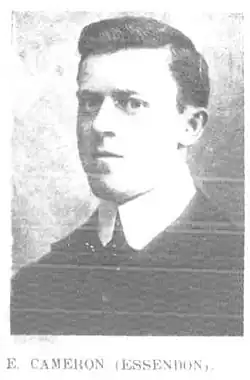 Ernest James "Ginger" Cameron (20 February 1888 – 16 December 1946) was an Australian rules footballer who played with Essendon in the Victorian Football League (VFL). He was a premiership player for the club in 1911.