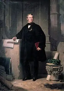 He was born at Jakobswalde [Kotlarnia] in Silesia in 1802. From 1833 he was the leading architect of Cologne Cathedral, which was to finally be completed.[1] At Cologne, he was next to Vincenz Statz the most important practical representative of Gothic Revival architecture. Zwirner was assigned the restoration after the death of Friedrich Adolf Ahlert, . After the work of restoration was finished, he presented his plans for the completion of the structure in 1841 to King Frederick William IV; upon the approval of the plans the work began the next year.[2]