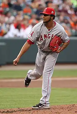 Ervin Ramon Santana (born Johan Ramon Santana; December 12, 1982) is a Dominican former professional baseball pitcher. He played in Major League Baseball for the Los Angeles Angels of Anaheim, Kansas City Royals (twice), Atlanta Braves, Minnesota Twins, and Chicago White Sox. Santana is a two-time All-Star, and he threw a no-hitter with the Angels in 2011.