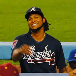 Santana proceeded to negotiate with the Toronto Blue Jays, and verbally agreed to a contract but stalled signing it for several days.[7][8] Following an injury to Kris Medlen of the Atlanta Braves, Santana immediately agreed to terms identical to the Blue Jays' reported offer of $14.1 million for one season.[9] Santana's first year in the NL was mixed as he posted an ERA of 3.94 with the Braves in 31 starts. He surrendered a career-low 16 home runs in 196 innings while going 14–10 and striking out 179 batters.