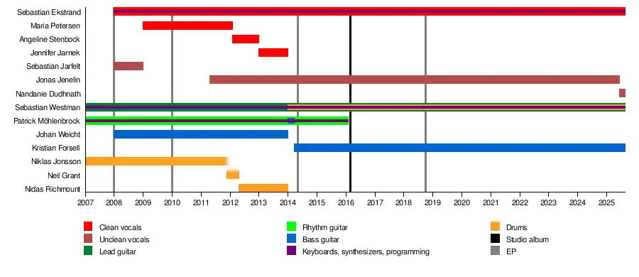 - Sebastian Ekstrand – clean vocals, keyboards, programming (2008–present)