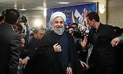 The incumbent President Hassan Rouhani was considered a potential candidate in 2015.[11] On 25 October 2016, Iranian interior minister Abdolreza Rahmani Fazli said that President Hassan Rouhani is “sure to run for a second term”.[12] On 13 January 2017, Mahmoud Vaezi said Moderation and Development Party will back Rouhani in the election.[13] Rouhani himself never announced bid for re-election.[14]
