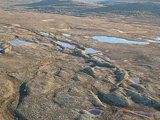 There are various cases where inland dunes have developed next to eskers after deglaciation.[7] These dunes are often found in the leeward side of eskers, if the esker is not oriented parallel to prevailing winds.[7] Examples of dunes developed on eskers can be found in both Swedish and Finnish Lapland.[7][8]