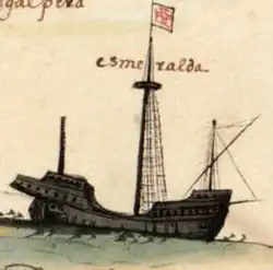 Esmeralda was a Portuguese carrack (Portuguese: nau) that sank in May 1503 off the coast of Oman as part of Vasco da Gama's 1502 Armada to India while commanded by da Gama's maternal uncle Vicente Sodré. First relocated in 1998 and excavated by David Mearns in 2013–15, is the earliest ship found, as of 2016, from Europe's Age of Discovery.[2][1][3]