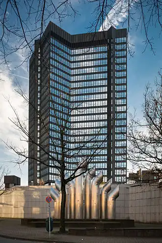 From the 22nd floor at a height of around 100 meters, a visitor area offers a view over the city and part of the Ruhr area. The building has the floor plan of a Y, but its view is impaired by the subsequent addition of several escape staircases, which had to be attached to the outside on the north and east sides as they had not been taken into account in the planning.