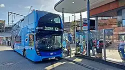 Essex Airlink is the brand given to three airport bus services run by First Essex. The brand was relaunched at Stansted Airport, England, on 17 February 2020.[1] There are three routes, X10, X20 and X30, which start their journey in Basildon bus station, Colchester and Southend Travel Centre, respectively. The X10 and X30 routes meet on the A130 and then follow the same route from there to Chelmsford where the route then splits with daytime X30 journeys traveling via Broomfield Road and serving Broomfield Hospital before compared to the X10, and night-time X30 journeys, taking a faster route to Stansted. Introduced in 2023. The X20 takes along A120 from Colchester to Stansted.