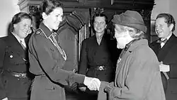 On September 17, 1958, on the 10th anniversary of the assassination of her husband Folke Bernadotte, she became the first leader of the Folke Bernadotte Foundation, a charity that supports children with cerebral palsy.[2][15] The foundation was created and supported by the Swedish Guide and Scout Association, the Swedish Red Cross, the Gothenburg Deaconess Society, and twenty other non-profit organizations, as well as by prominent medical and educational expertise.[15] Under Bernadotte's leadership, the Folke Bernadotte Foundation widened its mission to help children and young people with other disabilities.[15] Bernadotte was also the leader of the Folke Bernadotte Memorial Fund, a foundation whose mission is to increase understanding among young people at the international level.[16]
