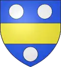 D'azur à une fasce d'or accompagnée de trois besants d'argent, deux en chef et un en pointe[2] |