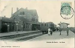 Estrées-Saint-Denis was previously a local railway centre, with connections to Clermont-de-l'Oise and to Ormoy-Villers. In addition to main-line services, it was the point of departure for the metre gauge secondary line operated by the Estrées-Saint-Denis - Froissy - Crèvecœur-le-Grand railway company, which linked the three towns via Saint-Just-en-Chaussée. In 1899, there were 26 passenger trains a day in 5 directions: Compiègne, Verberie, Saint-Just-en-Chaussée, Amiens and Clermont. The station had 80,000 passengers and 90,000 tonnes of goods traffic annually.[1] Passenger traffic from the station on the secondary line ended in 1948.