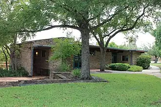 The Ethel Wilson Harris House is a house built in 1956 located in what is now the San Antonio Missions National Historical Park, outside the perimeter walls of the Mission San Jose, in San Antonio, Texas, USA. It is a Modern Movement or Wrightian architecture style house built in 1956, designed by Robert Harris.