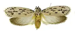 2. ^ Powell, Jerry (1973). "A systematic monograph of New World ethmiid moths (Lepidoptera: Gelechioidea)". Smithsonian Contributions to Zoology. 120 (120): 1–302. doi:10.5479/si.00810282.120. hdl:10088/5390. Public Domain This article incorporates text from this source, which is in the public domain.