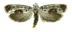 - ^ Powell, Jerry (1973). "A systematic monograph of New World ethmiid moths (Lepidoptera: Gelechioidea)". Smithsonian Contributions to Zoology. 120 (120): 1–302. doi:10.5479/si.00810282.120. hdl:10088/5390.