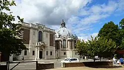 This practice continued until 1845 when a scholar refused to associate with the inns because they were a "temptation" to Eton students.[5] Eton was favourably modernised and was the first village in the UK to have its own post office and modern drainage system.[11] By 1925 the town was described as more commercial than residential, with most of the buildings (apart from those of the school itself) belonging to businesses serving the schoolboys.[5] In April 1970, Windsor Bridge, connecting Eton to Windsor, was closed to all motorised traffic. All traffic must now travel via Royal Windsor Way (formerly the Windsor and Eton relief road),[12] a bypass opened in 1966.