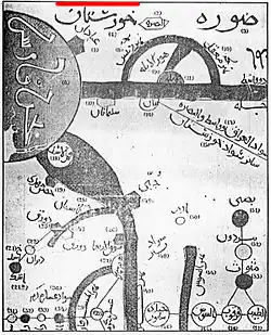 10th century regional map of Khuzestan by Ibn Hawqal. The word is underlined in red.