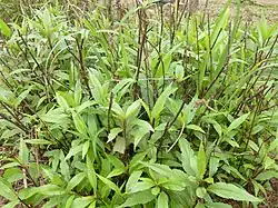 The plant is used medicinally in both Japan and China.[1][2] In Traditional Chinese Medicine it is indicated for poor appetite, nausea and vomiting due to 'dampness' obstructions or summer heat. Its modern usage includes stomach flus and acute gastritis, in conjunction with other herbs including Huo Xiang (Agastache rugosa).