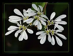 Euphorbia leucocephala, with many common names including little Christmas flower, white lace euphorbia, snow bush, snow flake, snows of Kilimanjaro[1] and white Christmas bush[2] is a species of plant in the family Euphorbiaceae. It is endemic to Mexico and Mesoamerica, and a relative of the poinsettia.[3] Its clear sap is an irritant that can cause blisters and skin rashes. Ingesting it can cause vomiting and diarrhea.[4]