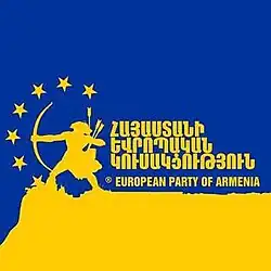 The European Party of Armenia (EPA) (Armenian: Հայաստանի եվրոպական կուսակցություն, romanizedHayastani yevropakan kusakts’ut’yun) is a pro-European political party in Armenia. It was founded on 6 November 2018 by Tigran Khzmalyan.[8][9] The party supports Armenia's accession process to the European Union and NATO.
