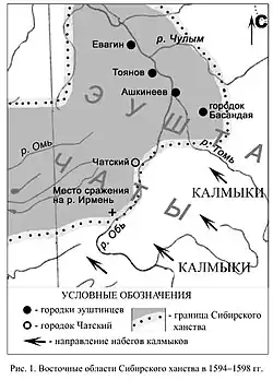 During the 15th and 16th centuries, the Eushta were under the rule of the Sibir Khanate.[4] When Russians first came into contact with the Eushta, they numbered around 800 people.