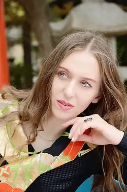 For her debut novel she recorded and released musical illustrations – CD Western Geisha (2016). Then she released CDs Nice to Meet You (2018) and West and East (2019) – consisted of her original songs in Japanese.[36] In 2019 she reached the final in Grand Prix: Anime Song Contest (Osaka, Japan) with her original song in Japanese I Love You Very Much.[37][38][39]
