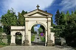 The new Lutheran cemetery on Bielska Street, east of the old town was established in 1887 on the city limits of Bobrek when the Old Evangelical Cemetery at the Jesus Church became inadequate to cope with mortality rates. The cemetery is divided into 6 quarters which was divided into individual sections and plots which can be seen on an electronic map.[1] The cemetery was declared a protected object of cultural heritage on 11 July 1986.[2]
