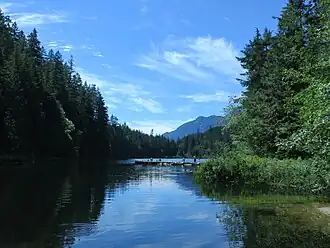 Evans Lake is a small, roughly triangular lake having a perimeter of about 1.3 kilometers, on the rise between the Cheakamus and Squamish Rivers in British Columbia, Canada. The 604-acre (2.44 km2) site has been home to youth camps since 1959. For decades Evans Lake was used primarily by the Junior Forest Wardens of BC. Later, the BC Forestry Association ran summer camps for children.