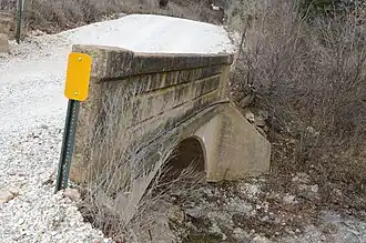 The Evansville-Dutch Mills Road Bridge is a historic bridge in rural western Washington County, Arkansas. It is a single-span concrete filled-spandrel arch bridge, which carries Dutch Mills Road (County Road 464) over Whitaker Branch South south of the village of Dutch Mills The bridge was built in 1936 by the Luten Bridge Company, and was one of its last commissions in the county. The arch spans 28 feet (8.5 m) and the bridge has a total structure length of 30 feet (9.1 m). The bridge was built with a unique Luten Company design that used rings to strengthen the connection between the piers and spandrel walls, enabling a reduced amount of material while maintaining the strength of the bridge.[2]
